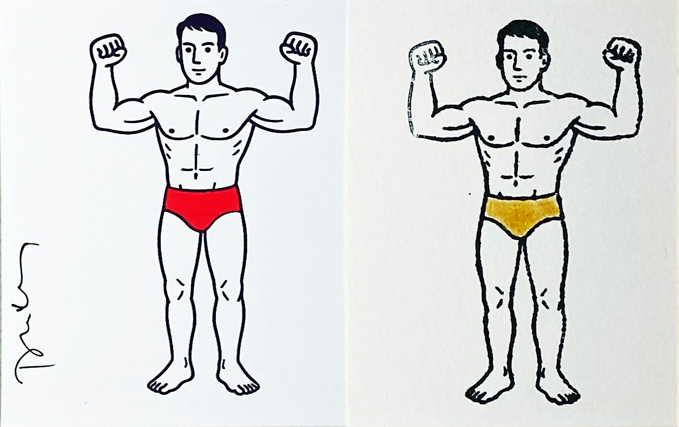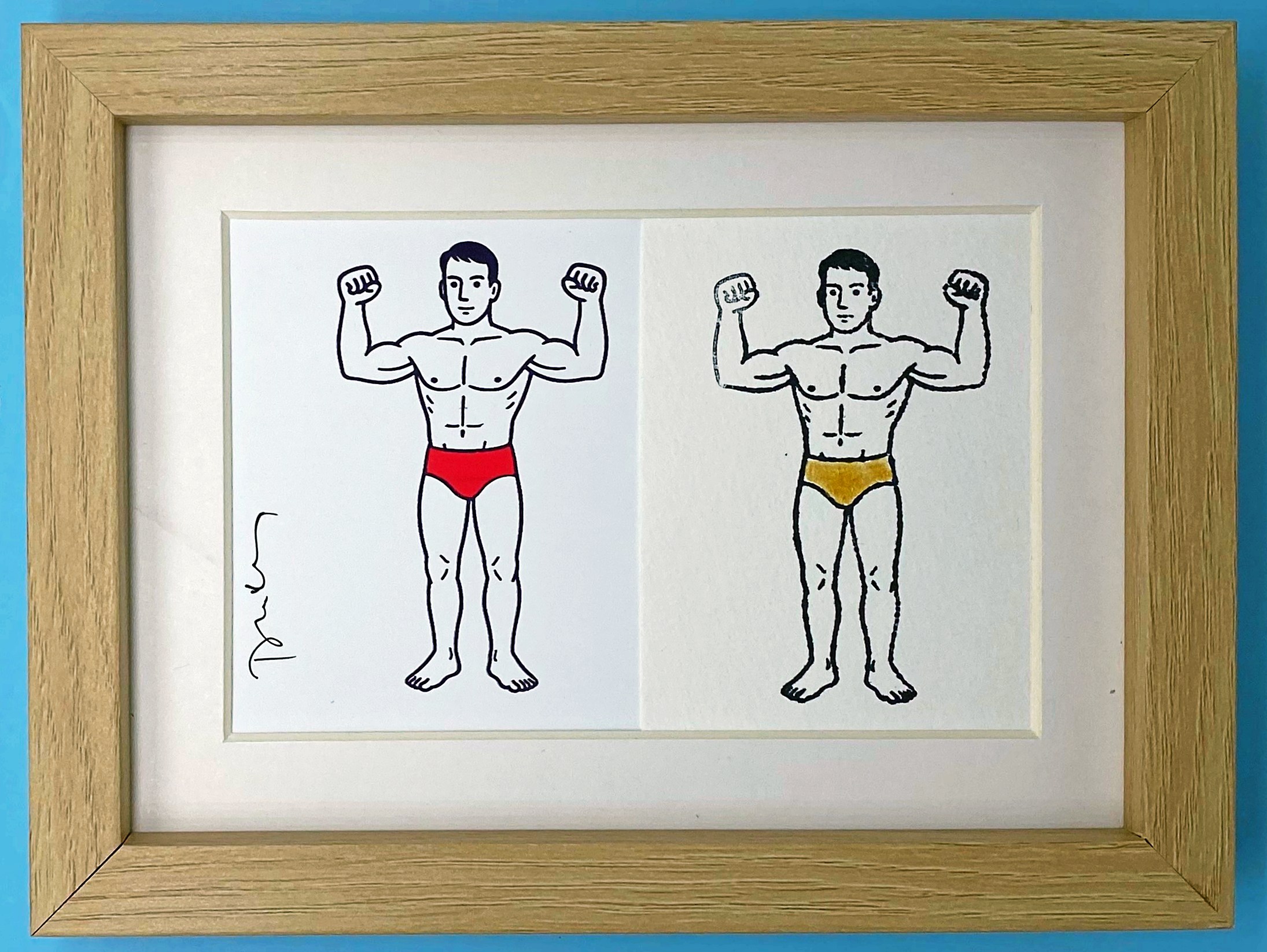 Dans la série Les Beaux Nageurs cette composition originale faite à partir de 2 pièces distinctes : une impression jet d’encre et un création au tampon sur papier Clairfontaine. Feutre couleur or. Passe-partout. Vendu avec le cadre. Daté et signé également au dos. Format encadré 20 x 15,5 cm. Taille de l’image apparente : 14 x 9 cm
