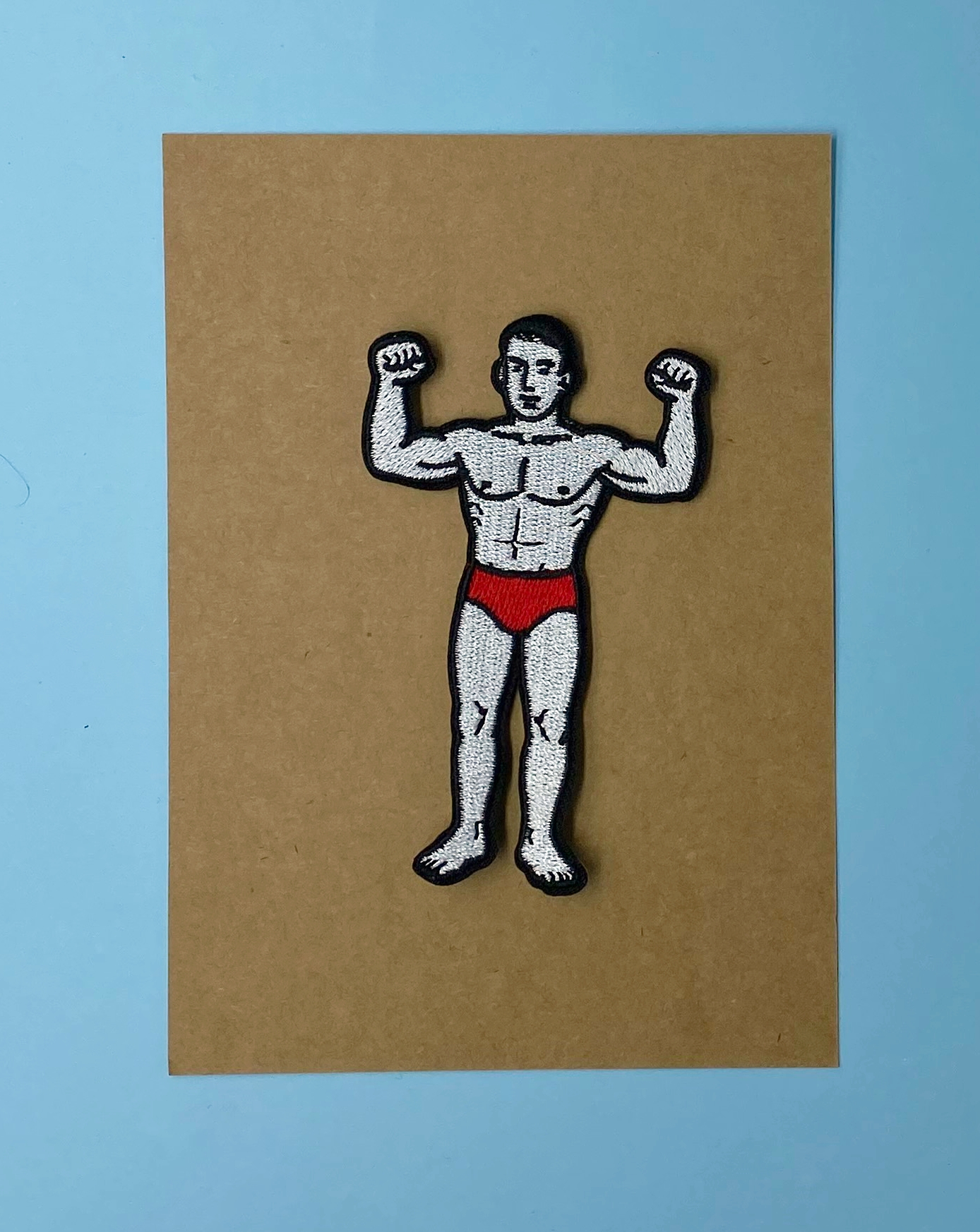 Dans la série Les Beaux Nageurs de Bruno Lecoq ce Beau Nageur en maillot rouge. Patch en tissus thermocollant made in France. 9 cm de hauteur, 5,5 cm au plus large. Modèle déposé 2025